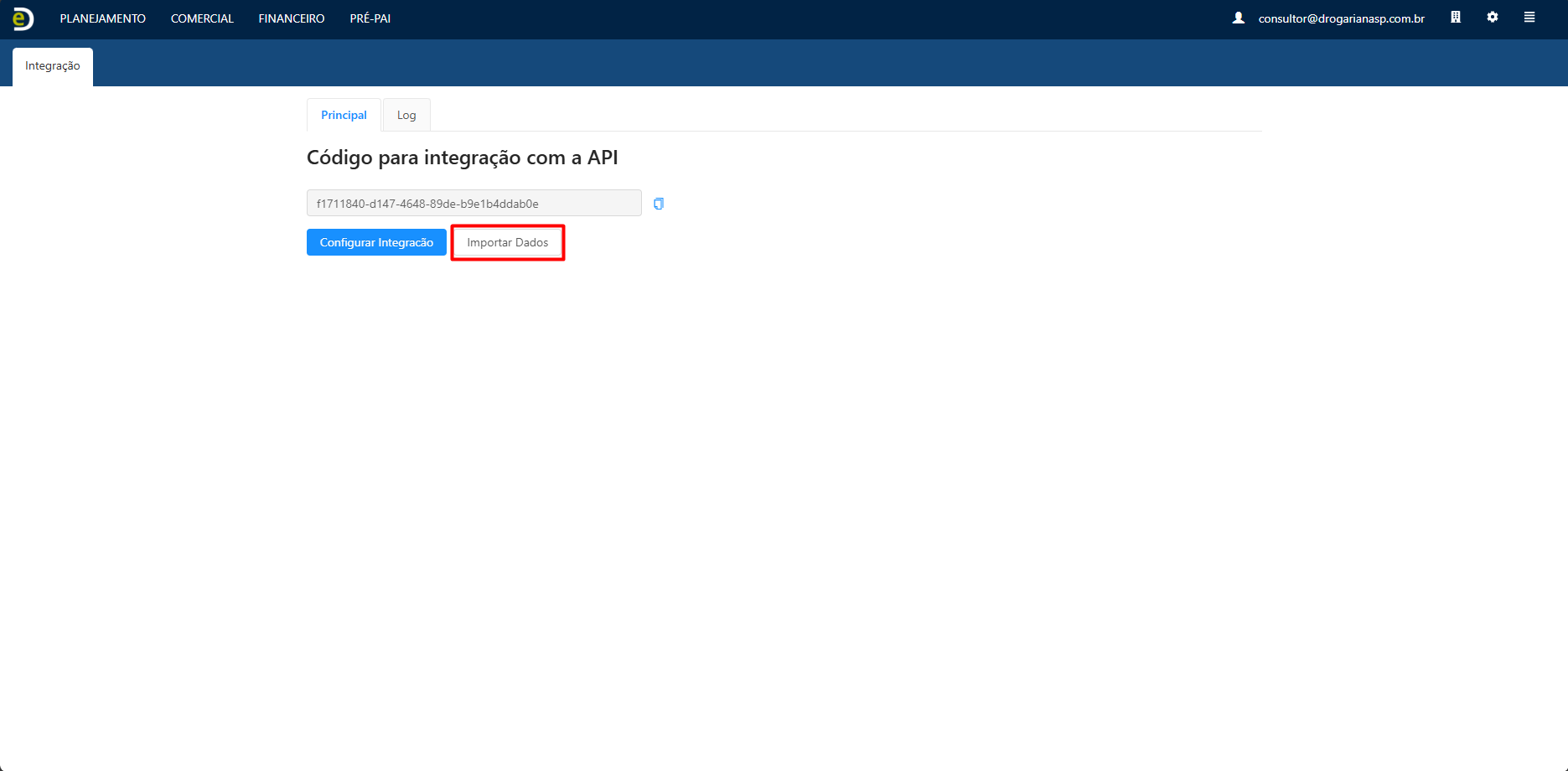 - Em seguida, clique em "Importar Dados":